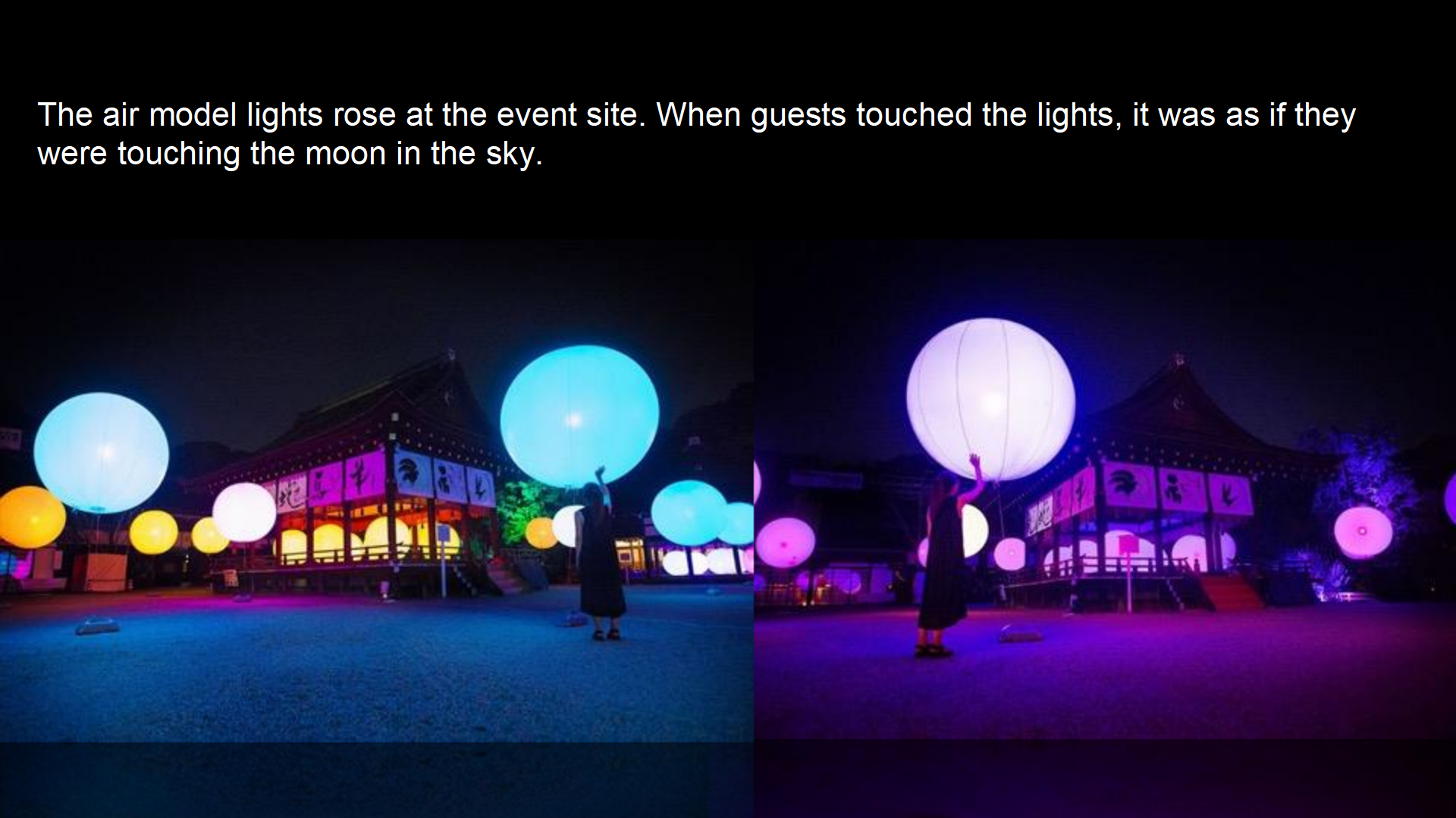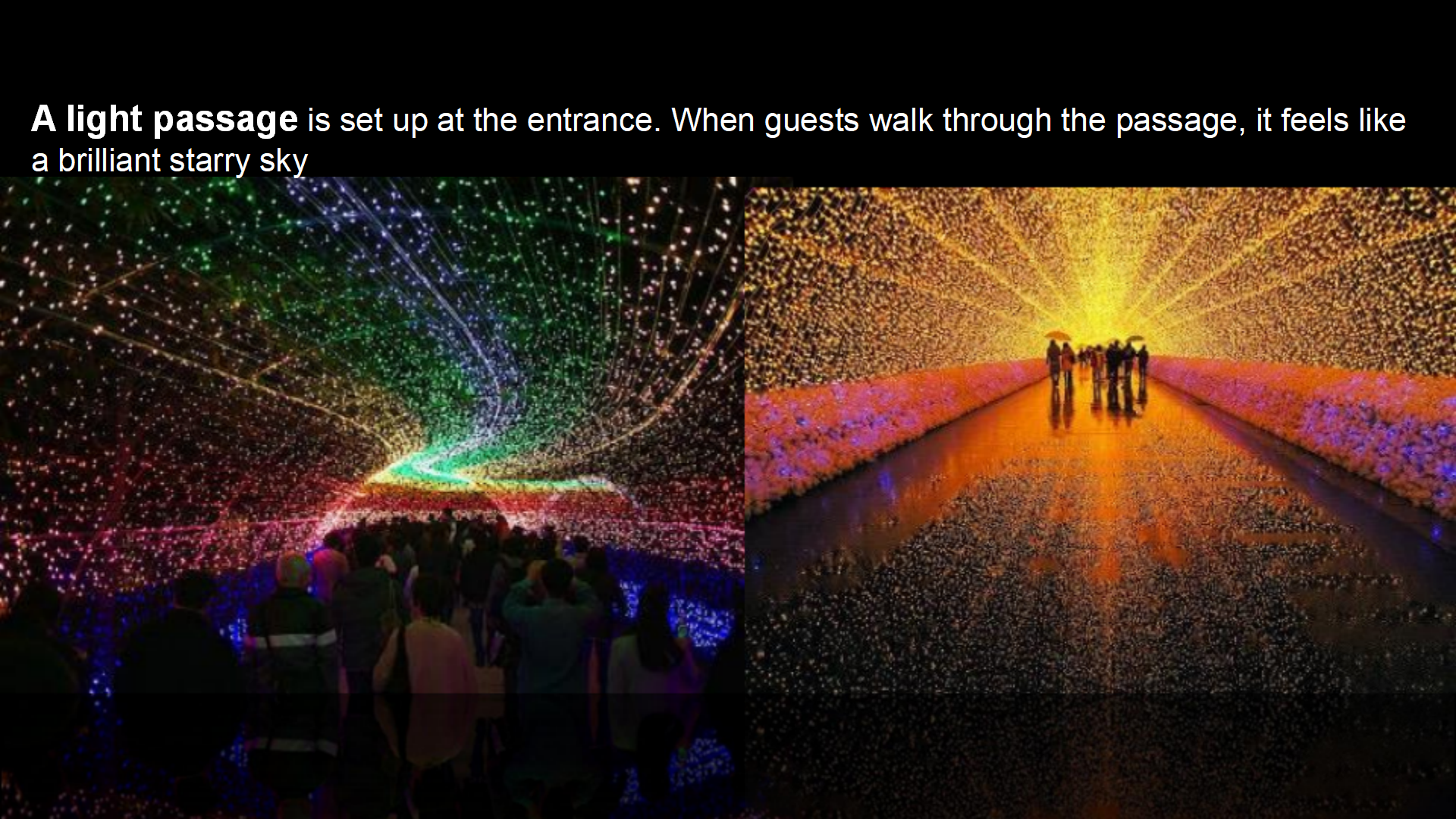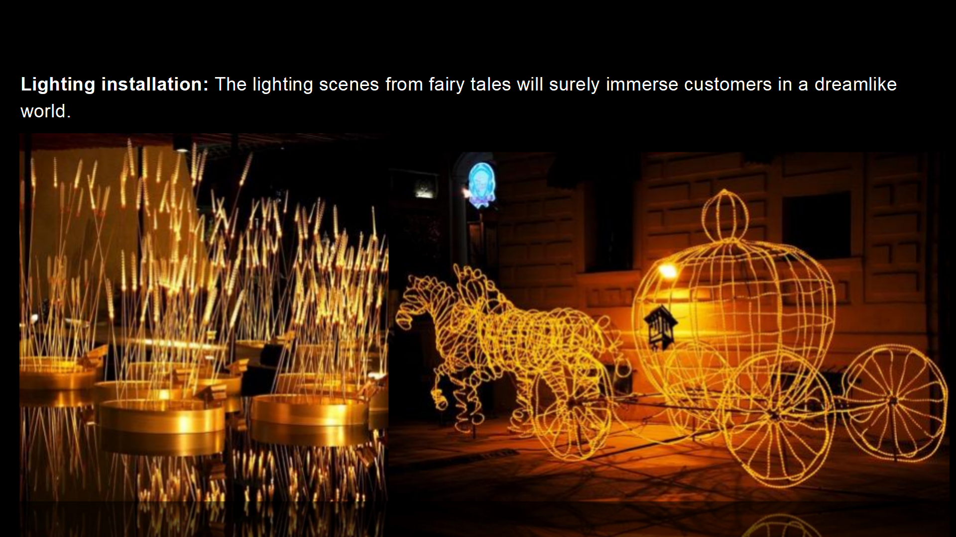 Use the shape of the lights to create various forms of on-site environments, making the entire environment more harmonious and unified.Design interactive lighting, interact with customers, and enjoy the breeze and music on summer nights